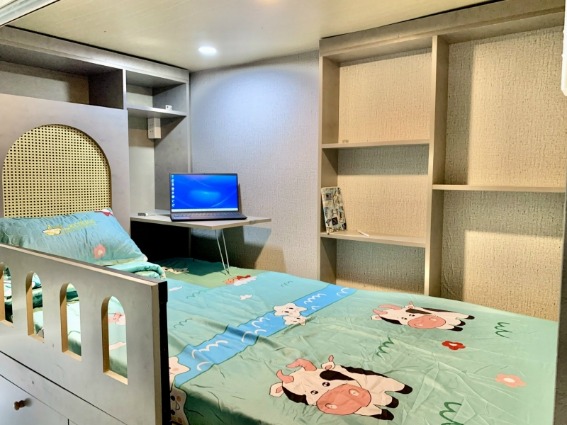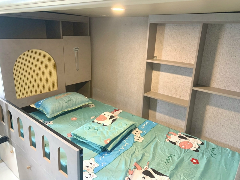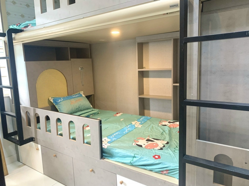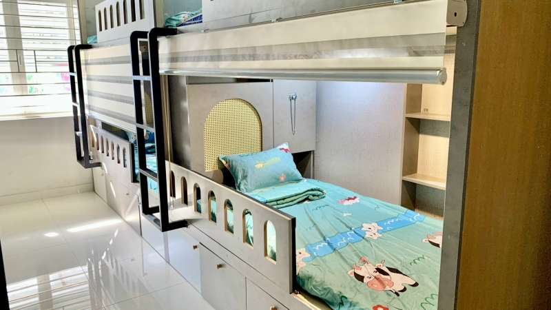 7. Nội thất phòng:máy lạnh tủ quần áo giường nệm 8. Thông tin ktx Trang bị giường nệm rèm , bàn học, ổ điện, thanh treo đồ, đèn học